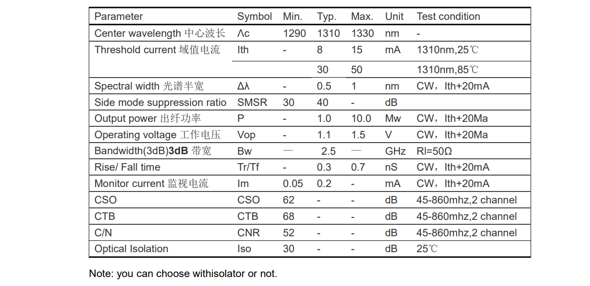 ➢ MQW 1310nm DFB LD 多量子阱分布反馈激光器