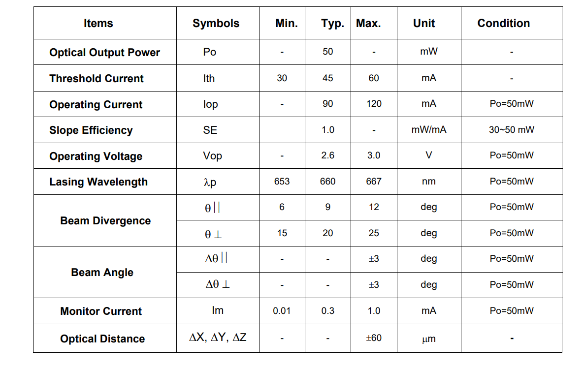 It's an attractive light source, with a typical light output power of 50mW for optoelectronic devices such as DVD R/RW.